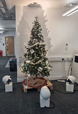 The winning tree was a brilliant example of creativity and collaboration. Team members from Transport, Warehouse, Fabrication, Technical and Marketing joined forces, crafting a unique tree from an inventive mix of shrink wrap, column keys, optics, architectural lights, marketing materials, photocells, a bespoke star and more. Their resourcefulness and teamwork truly stood out.