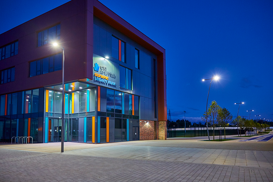 Designed as a major part of Sheffield’s Innovation District, the site brings together world-class sports facilities, education, research and community-focused spaces, requiring an exterior lighting scheme that supports both visual impact and everyday functionality.