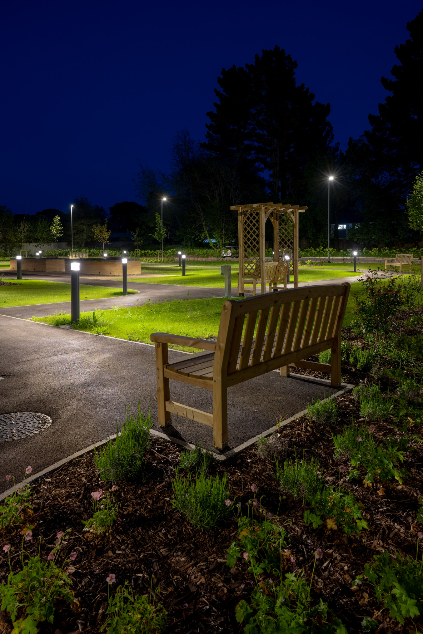 Wooldridge View is a residential development in New Milton designed to support independent living for residents aged 55 and over, with dedicated on-site support available around the clock. The ProjectLocated within a sensitive woodland setting, the project required a dark sky compliant lighting scheme that minimised light spill while maintaining safe visibility for residents and staff. Emergency lighting provision was also essential across key areas of the site. The SolutionA coordinated lighting approach was developed, combining wall-mounted luminaires, bollards and street lighting to ensure consistent illumination across all external areas. SEMITA Urban wall luminaires were installed around the building perimeter in 2700K, delivering low glare illumination with DarkSky compliance while reducing light pollution. Emergency functionality was integrated to meet project requirements. VAILO bollards were used throughout gardens and walkways, providing controlled, symmetrical distribution to enhance safety and visual comfort. For the access road and car park areas, VIVA-CITY PRO luminaires were specified to deliver high-performance, uniform illumination with precise optical control, reducing obtrusive light while ensuring safe navigation throughout the site. Key Outcomes