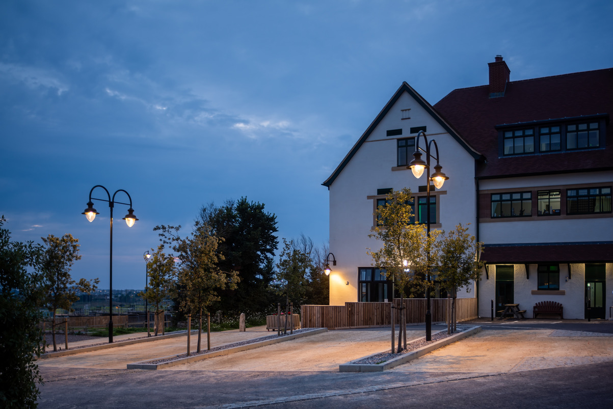 This Hub Complex lighting project focused on delivering a human-centric exterior lighting scheme that enhances safety, atmosphere and usability, while supporting the site’s sustainability goals and respecting its traditional architectural setting.