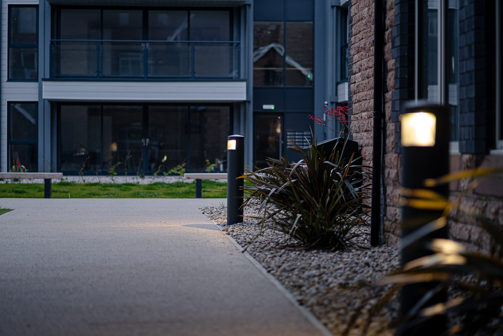 Opting for a range recessed, downlighters and wall mounted luminaires, sitting alongside stylish bollards, a stunning lighting scheme was created to bring this new development to life.
