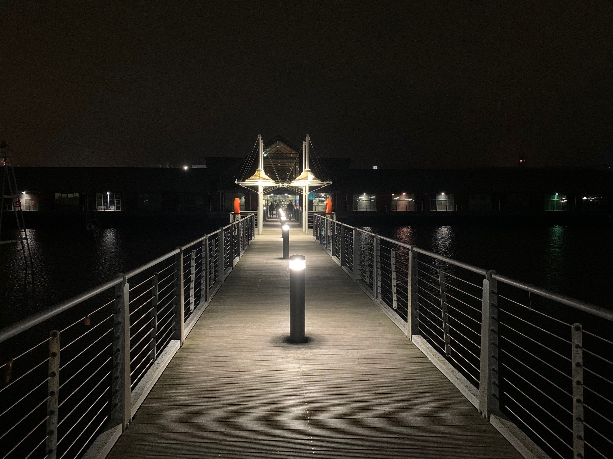 Upon the site inspection, we discovered 14 old technology bollards along the bridge which guide pedestrians towards The Quay. We had a plan to replace the existing luminaires with new LED bollards reducing energy costs, as well as creating a stylish pathway to the elegant venue. We took into consideration for spacings, overall aesthetic and potential restrictions such dark sky compliance, uniformity and glare.